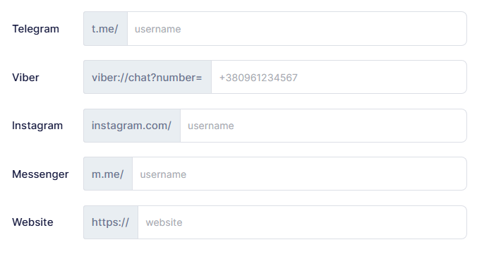 Форма редагування контактних даних візитки має вигляд модального вікна: