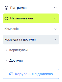 "Налаштування" - "Команда та доступи" - "Доступи"